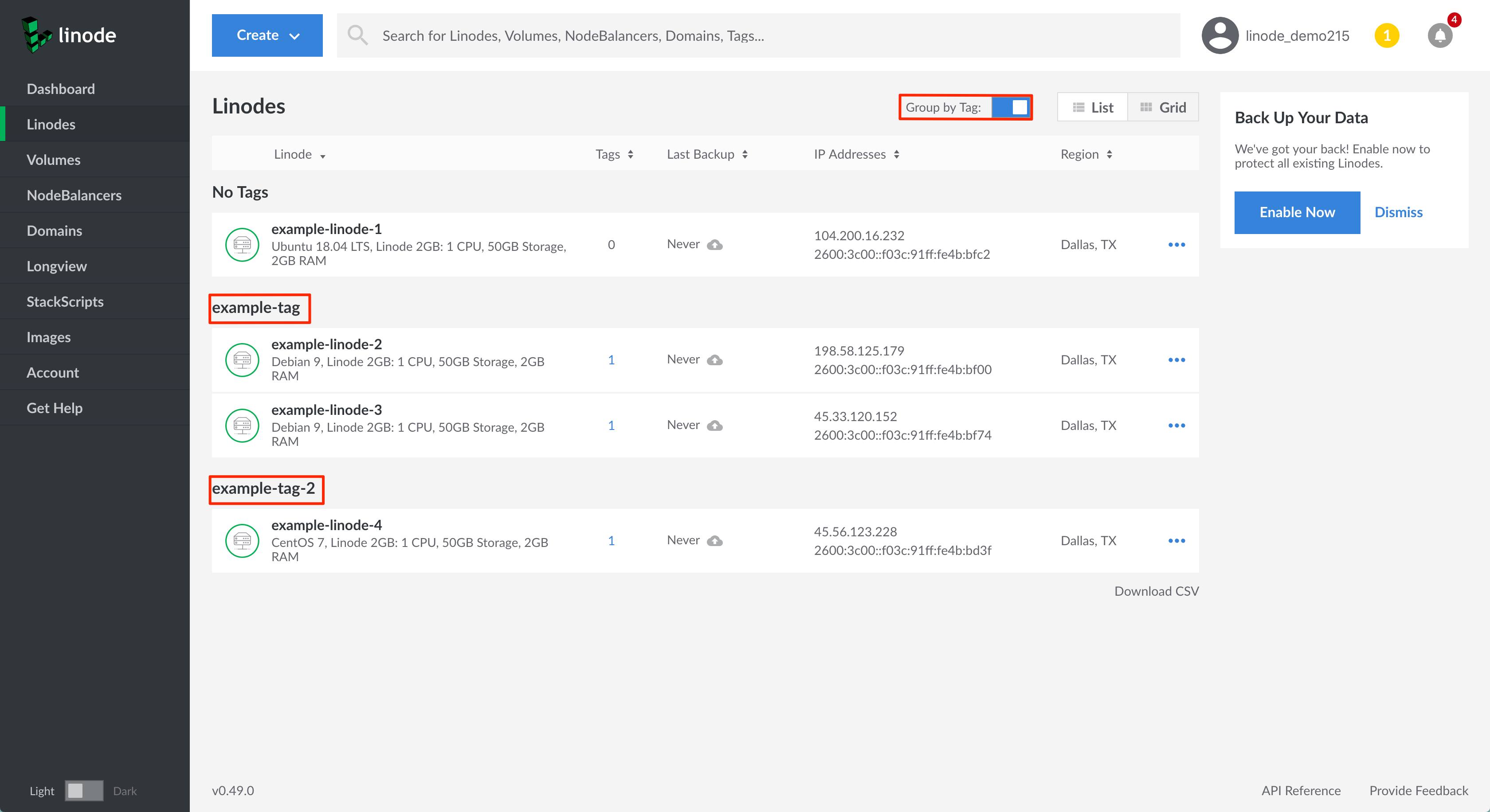 Linode’s Cloud Manager and API allow you to create tags to help organize and group your Linode resources. Tags can be applied to Linodes, Block Storage Volumes, NodeBalancers, and Domains.